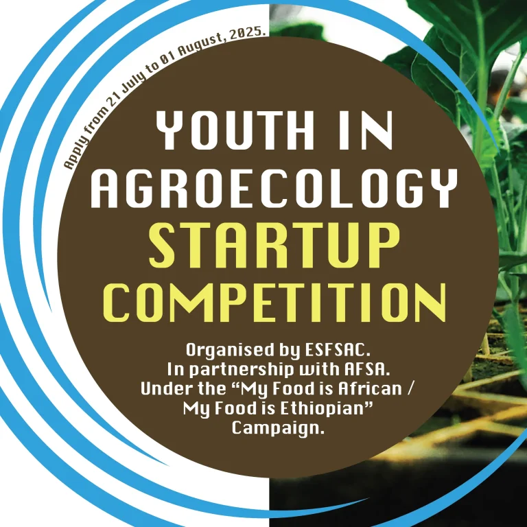 Through a combination of advocacy, storytelling, research, education, and strategic collaboration, ESFSAC turns this vision into concrete action. We produce media and public-education campaigns that celebrate indigenous food traditions and healthy, locally appropriate diets; we support transdisciplinary research to uncover and promote contextually relevant agroecological solutions; and we work to integrate agroecology into school curricula from primary through tertiary levels. Complementing this work, ESFSAC created the “Youth in Agroecology Startup Competition,” an initiative that empowers young innovators to build sustainable, food-system solutions grounded in their communities — promoting entrepreneurship, indigenous food promotion, and food sovereignty among Ethiopia’s youth.